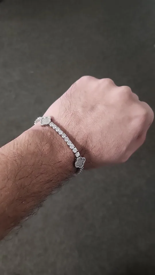 The Four Leaf Clover Moissanite Tennis Bracelet is a statement of timeless grace and feminine allure. Each shimmering 3mm D color VVS1 moissanite stone is masterfully set to radiate unmatched brilliance — capturing light from every angle with an excellent 8 hearts and 8 arrows cut.