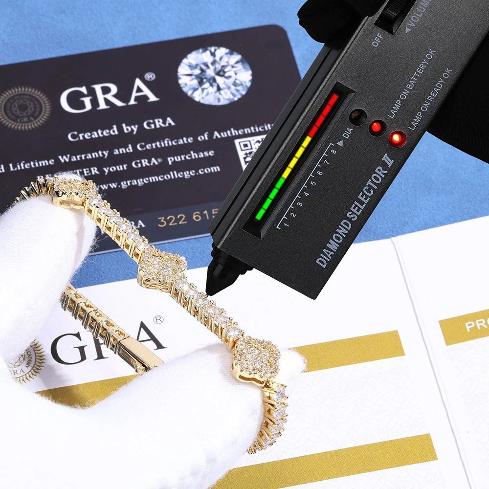 Four Leaf Clover Details Moissanite Tennis Bracelet - Gift For Him and Her