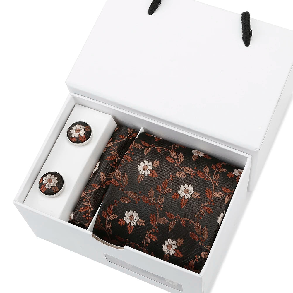 • Complete Set: This set includes a tie, cufflinks, and a pocket square, providing everything you need for a coordinated and stylish look.