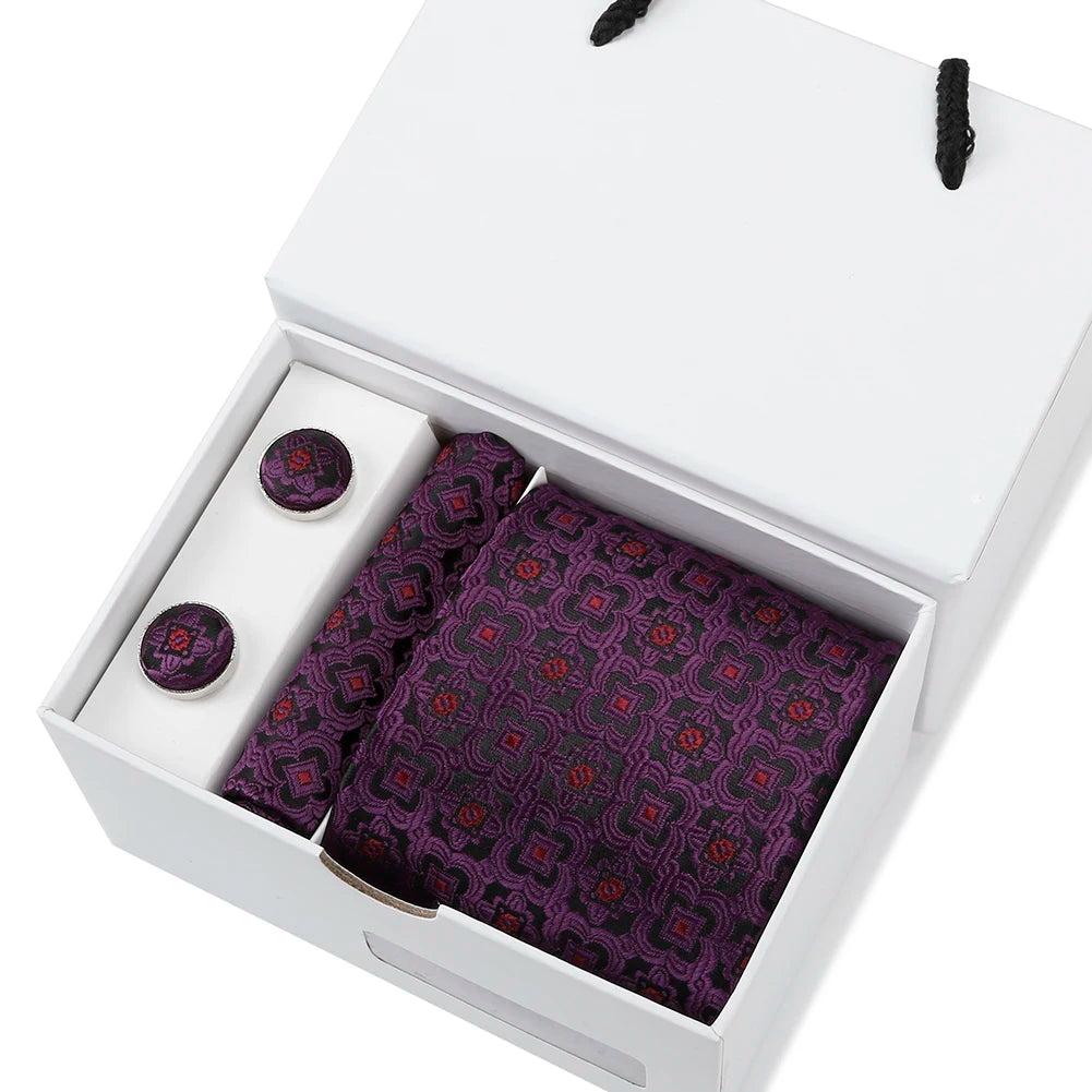 Whether you're attending a business meeting, a wedding, or a formal event, our Geometric Business Neckties, Cufflinks, and Pocket Square Set is the ideal choice. This set ensures you look your best, exuding confidence and sophistication. Plus, it comes in a beautifully packaged gift box, making it an excellent gift for any gentleman.