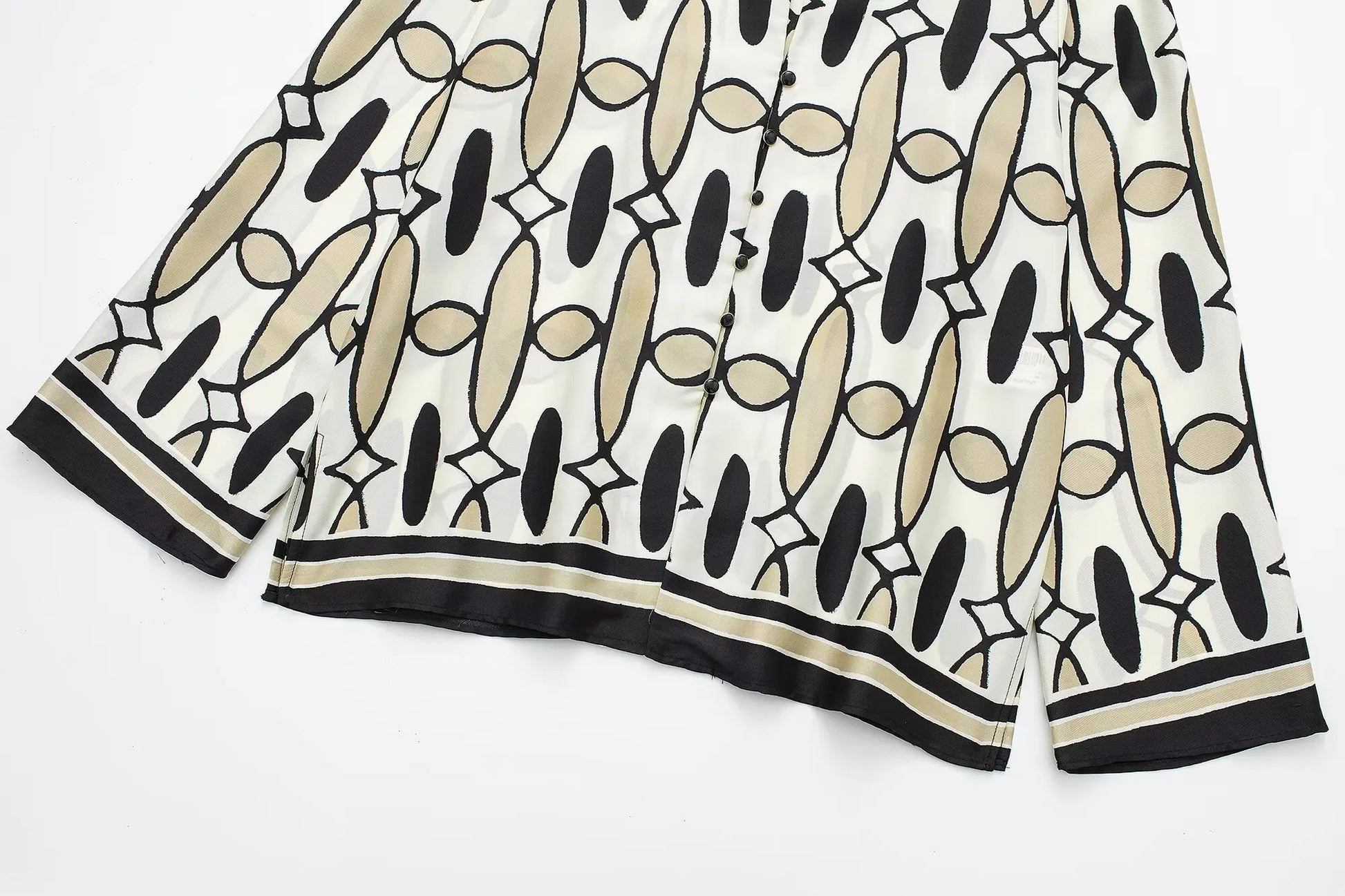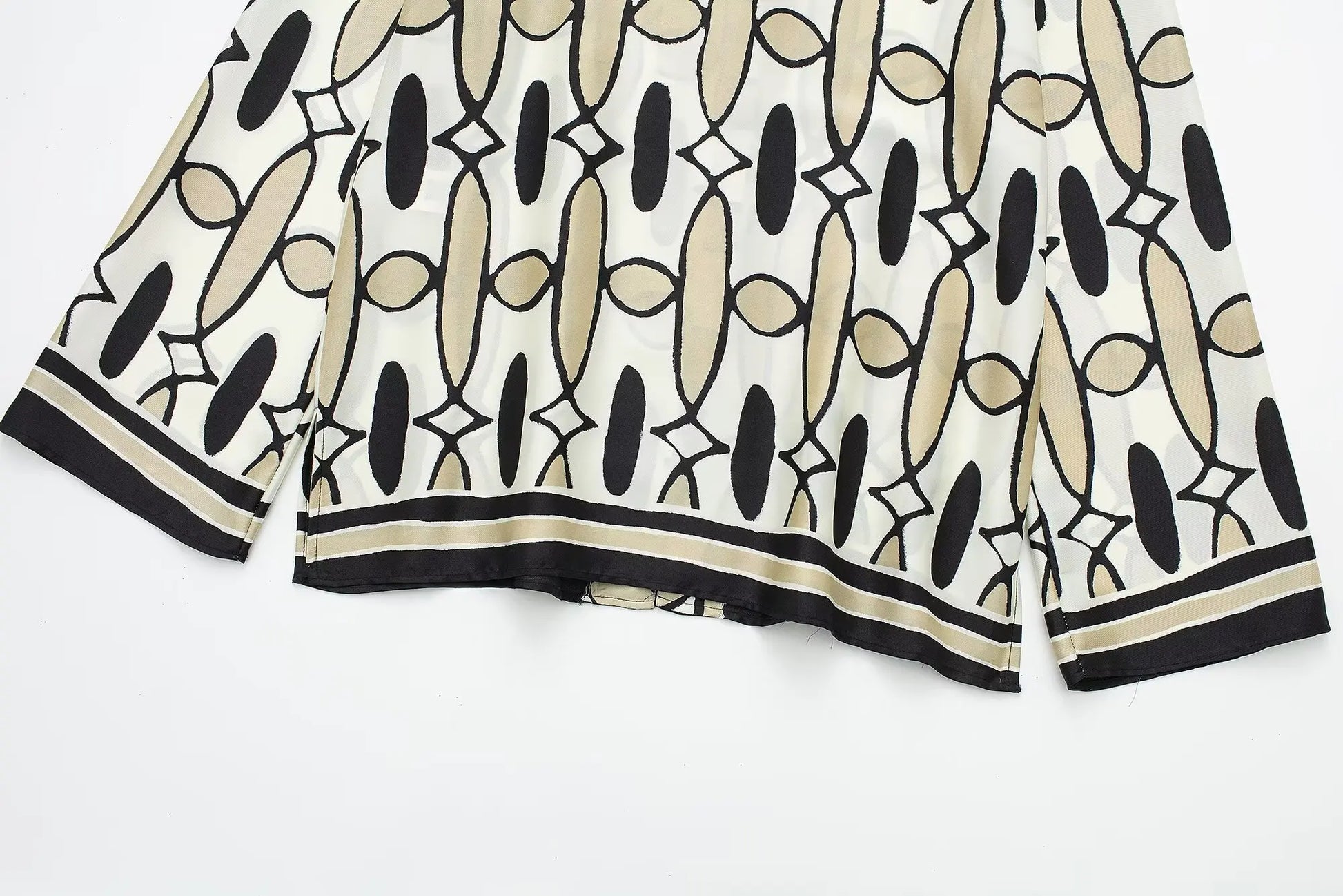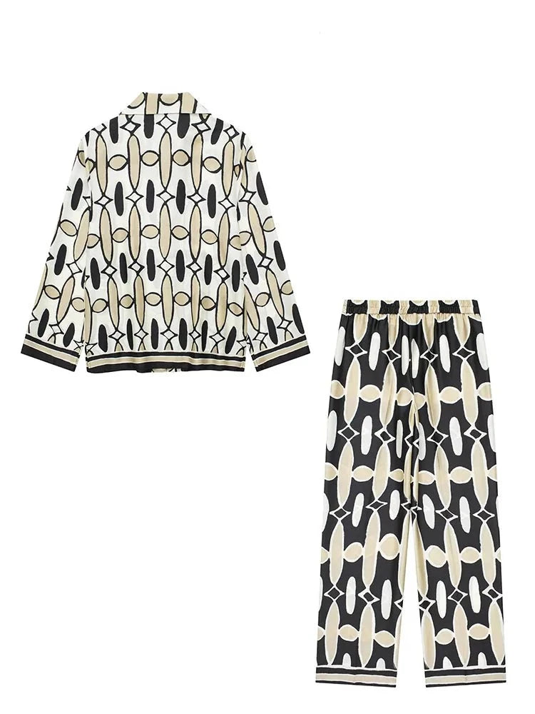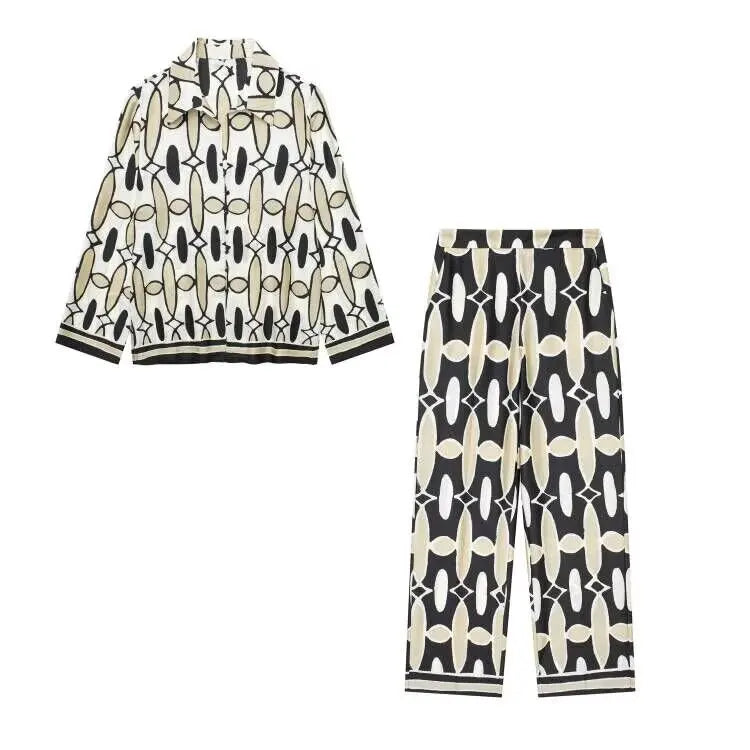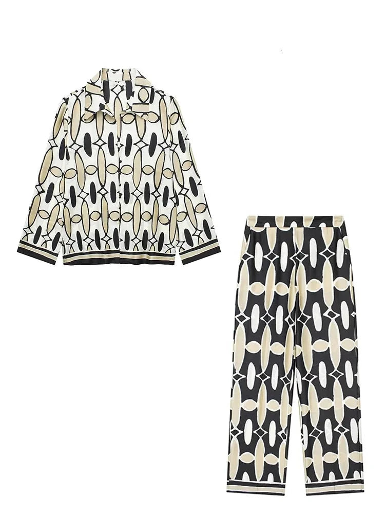 Embrace modern style with our Geometric Print Long Sleeve Shirt and Pants Set. This contemporary outfit features a striking geometric pattern that combines fashion-forward design with ultimate comfort. Ideal for both casual and semi-formal occasions, it offers a sleek and polished look.