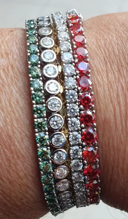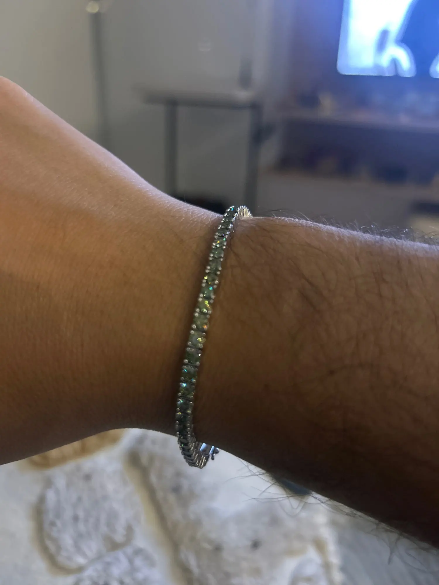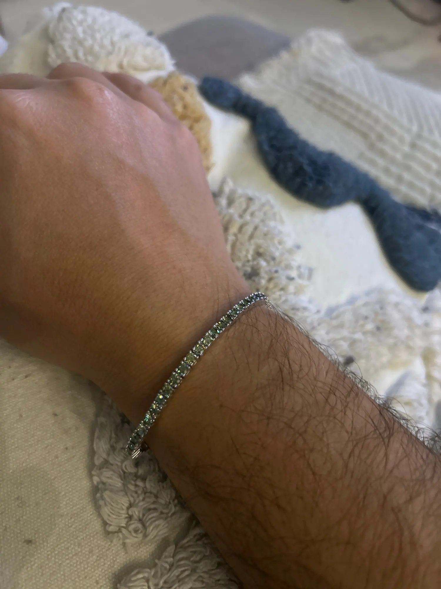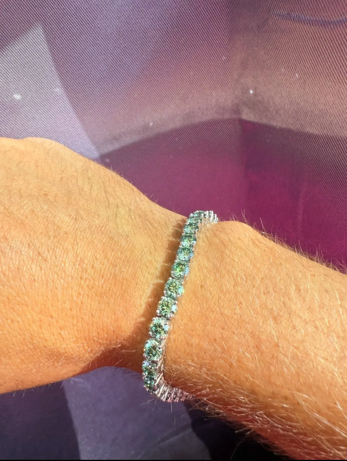 Let the enchanting green brilliance of this moissanite tennis bracelet be your signature of refined luxury — a masterpiece that elevates every moment.