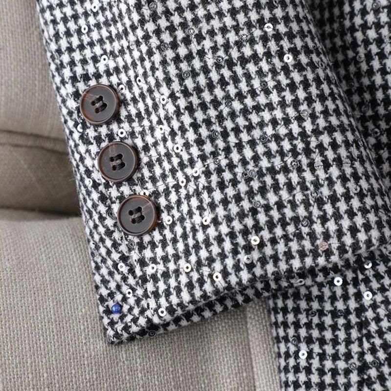 - Houndstooth Pattern: Timeless houndstooth design enhanced with shimmering sequins for a modern twist.