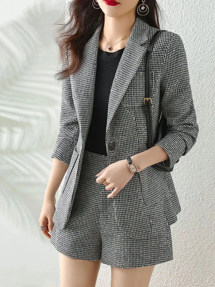 - Stylish Shorts: High-waisted shorts designed to complement the blazer, offering a chic and cohesive outfit.