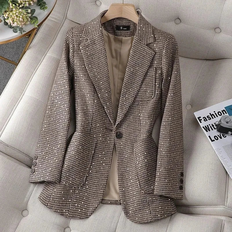 - Elegant Blazer: Features a tailored fit with a single-breasted closure, notched lapels, and structured shoulders, providing a polished and fashionable look.