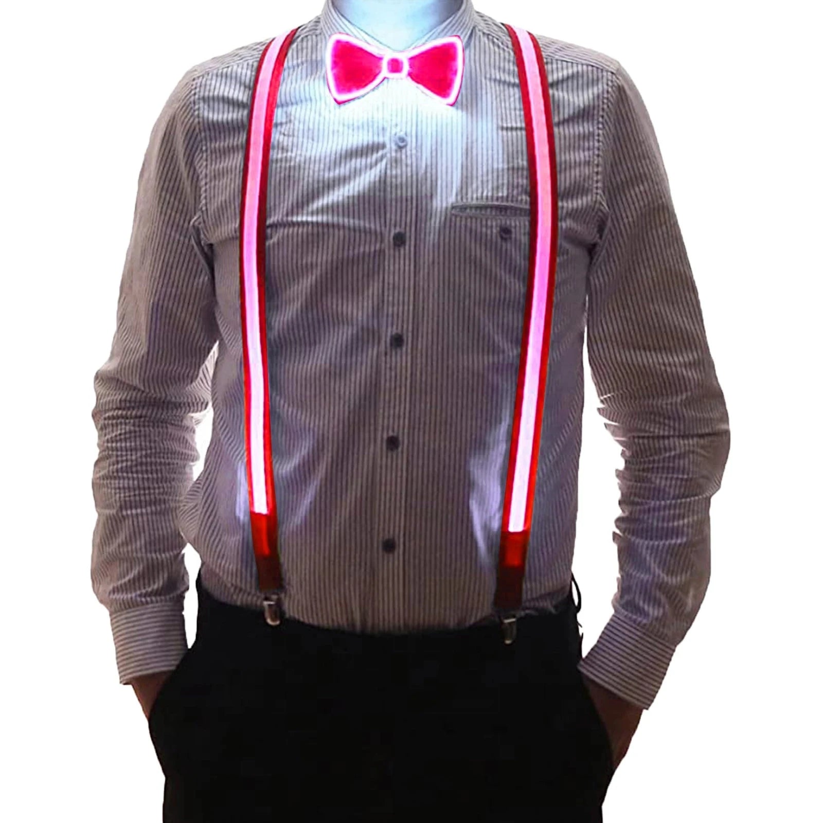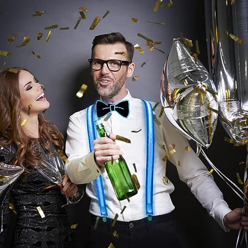 Light up the night with these adjustable, LED suspenders and bow tie set. Perfect for parties, weddings, and festivals. Shop now and stand out!