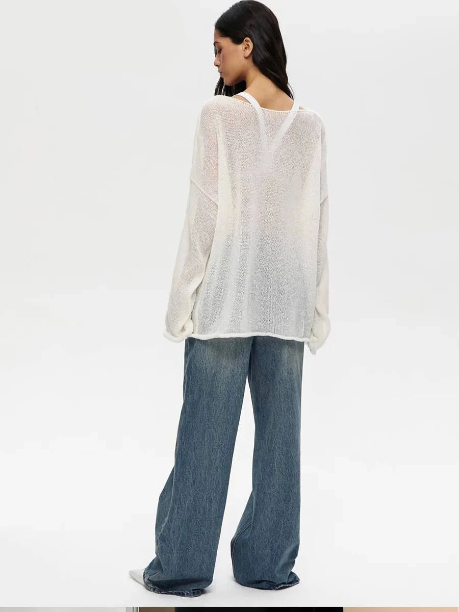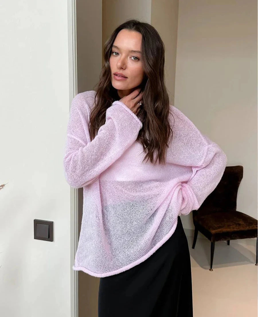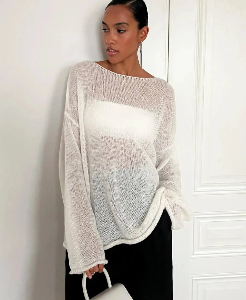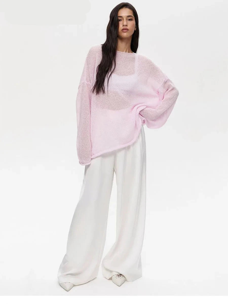- Crafted from a lightweight, semi-transparent fabric, this sweater offers a hint of allure while keeping you comfortably covered. Pair it with a contrasting tank top for a chic, layered look.