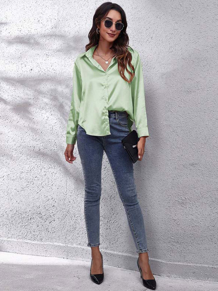 Experience the perfect blend of style, comfort, and versatility with our Women Loose Fit Satin Long Sleeve Button Up Blouse Shirt. Elevate your wardrobe with this timeless and sophisticated piece. Shop now and embrace the beauty of effortless elegance.