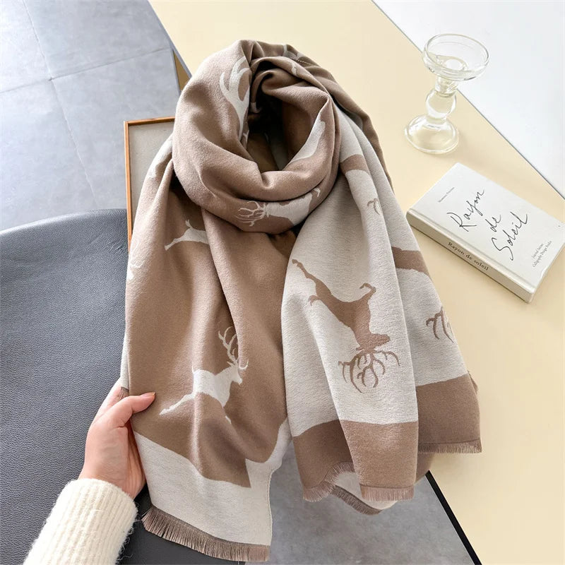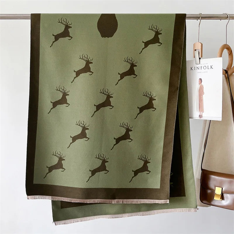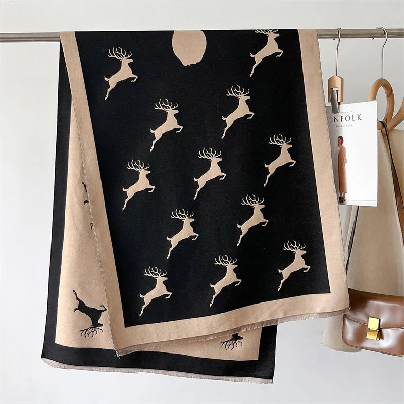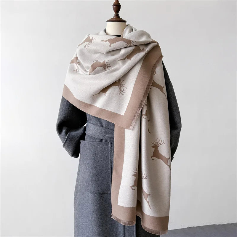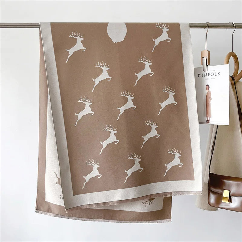 Luxury Cashmere Scarf - Deers Print Double-Sided Pashmina