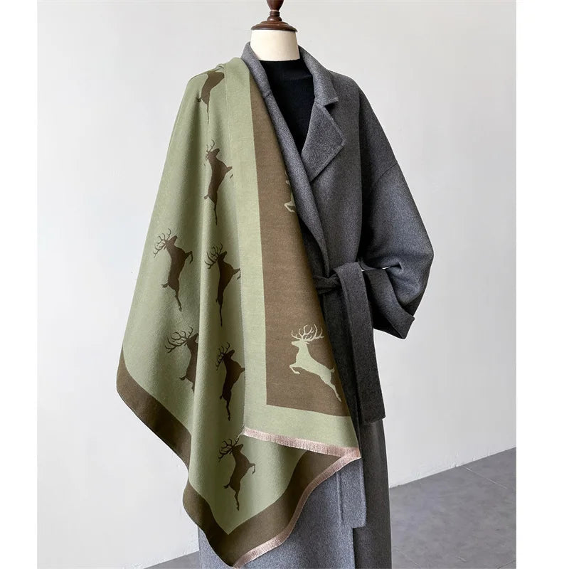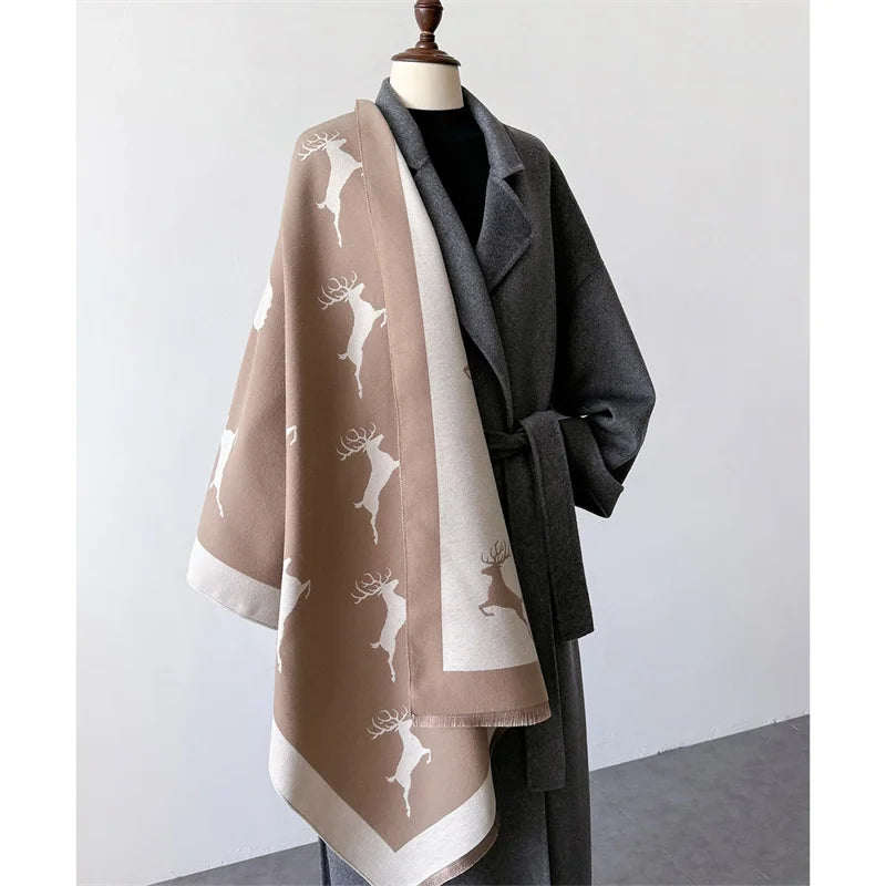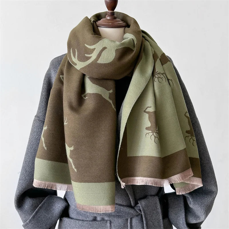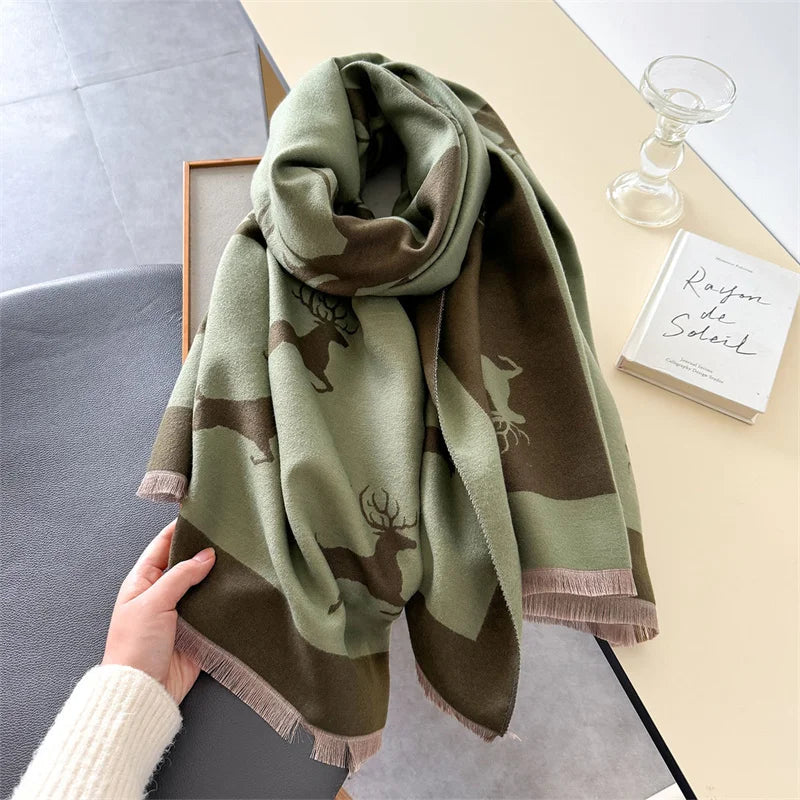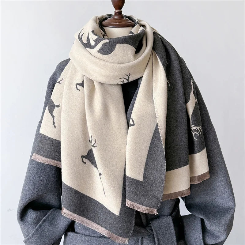 Luxury Cashmere Scarf - Deers Print Double-Sided Pashmina
