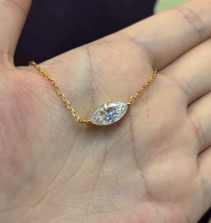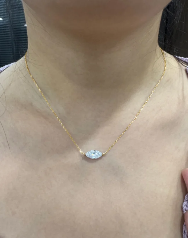 Marquise Cut Solitaire Moissanite 18k Gold Plated Necklace - Christmas gift for Her