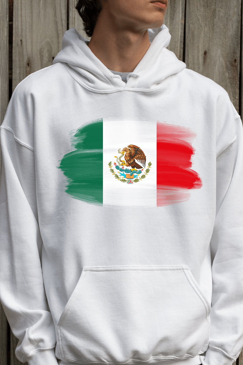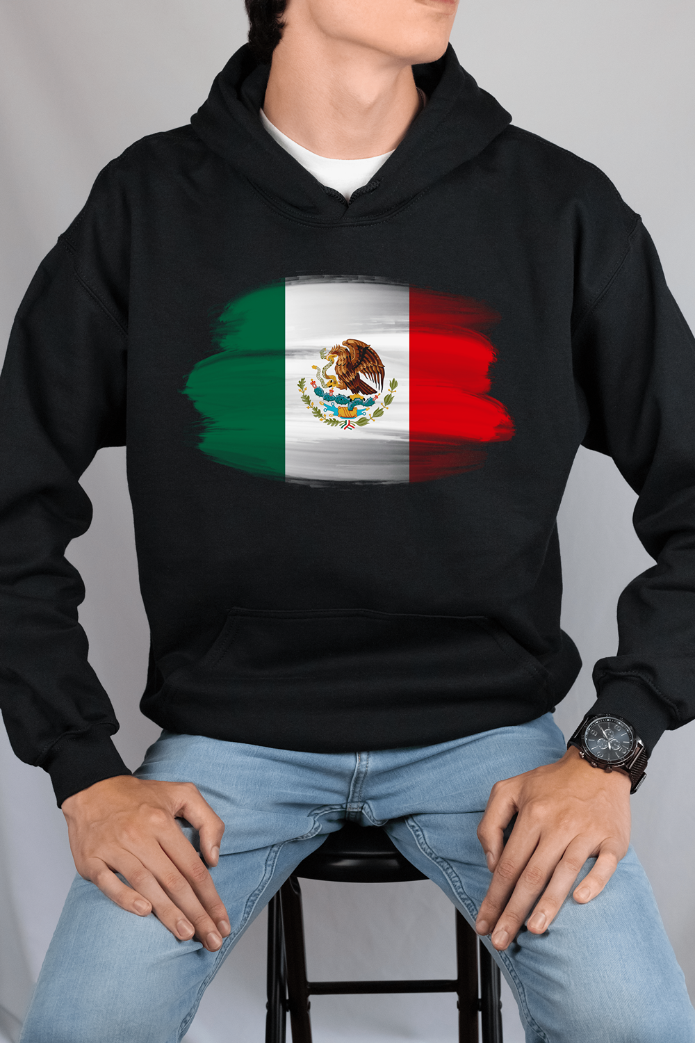 Featuring a bold and striking Mexico flag print on the front, this hoodie is perfect for showing off your patriotism and support for your country. The high-quality print is vibrant and long-lasting, ensuring that it will look great even after multiple washes. The classic design of the hoodie makes it perfect for everyday wear, whether you're running errands around town or hanging out with friends.