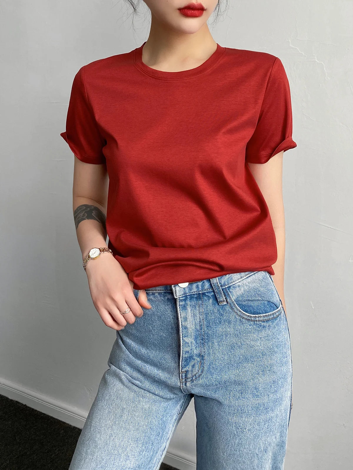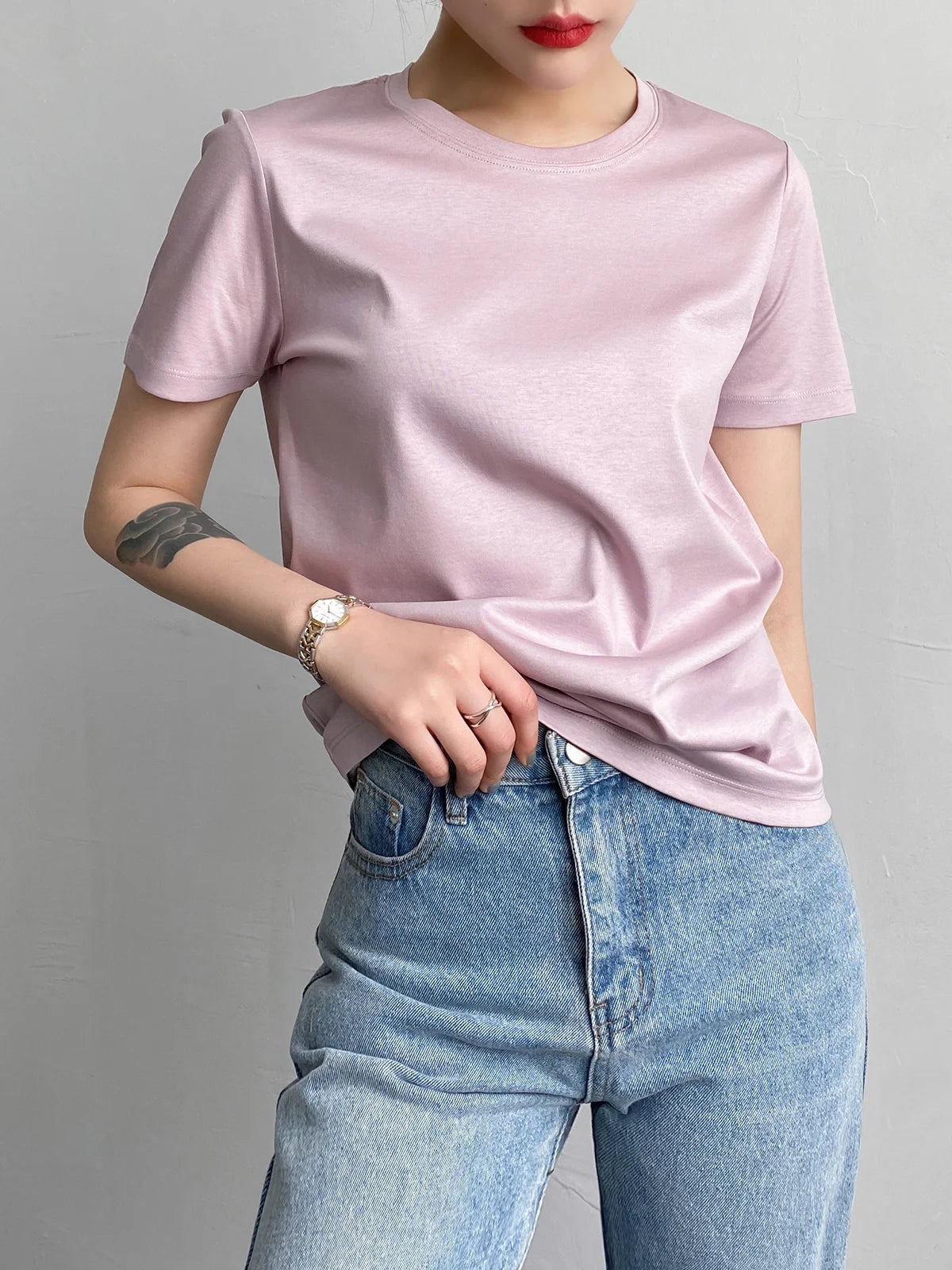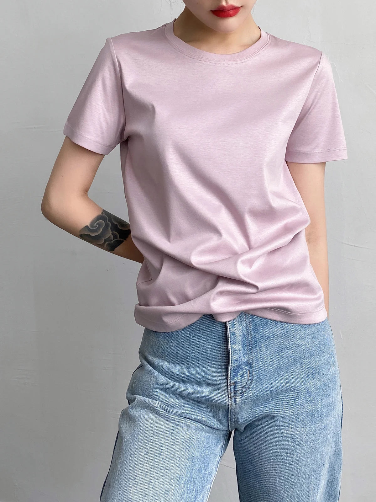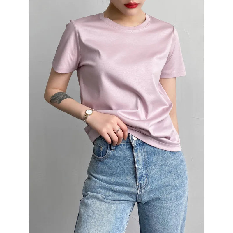 Mulberry Silk Solid Color Round Neckline T-Shirt