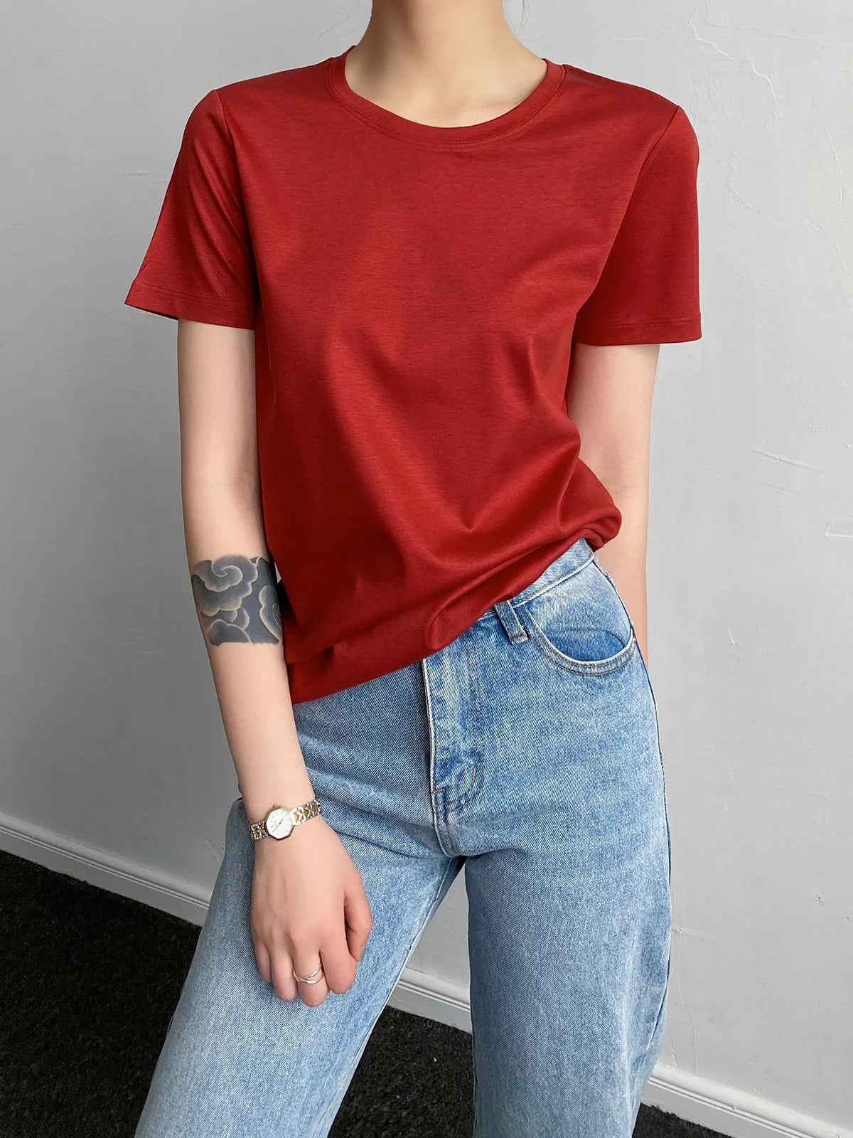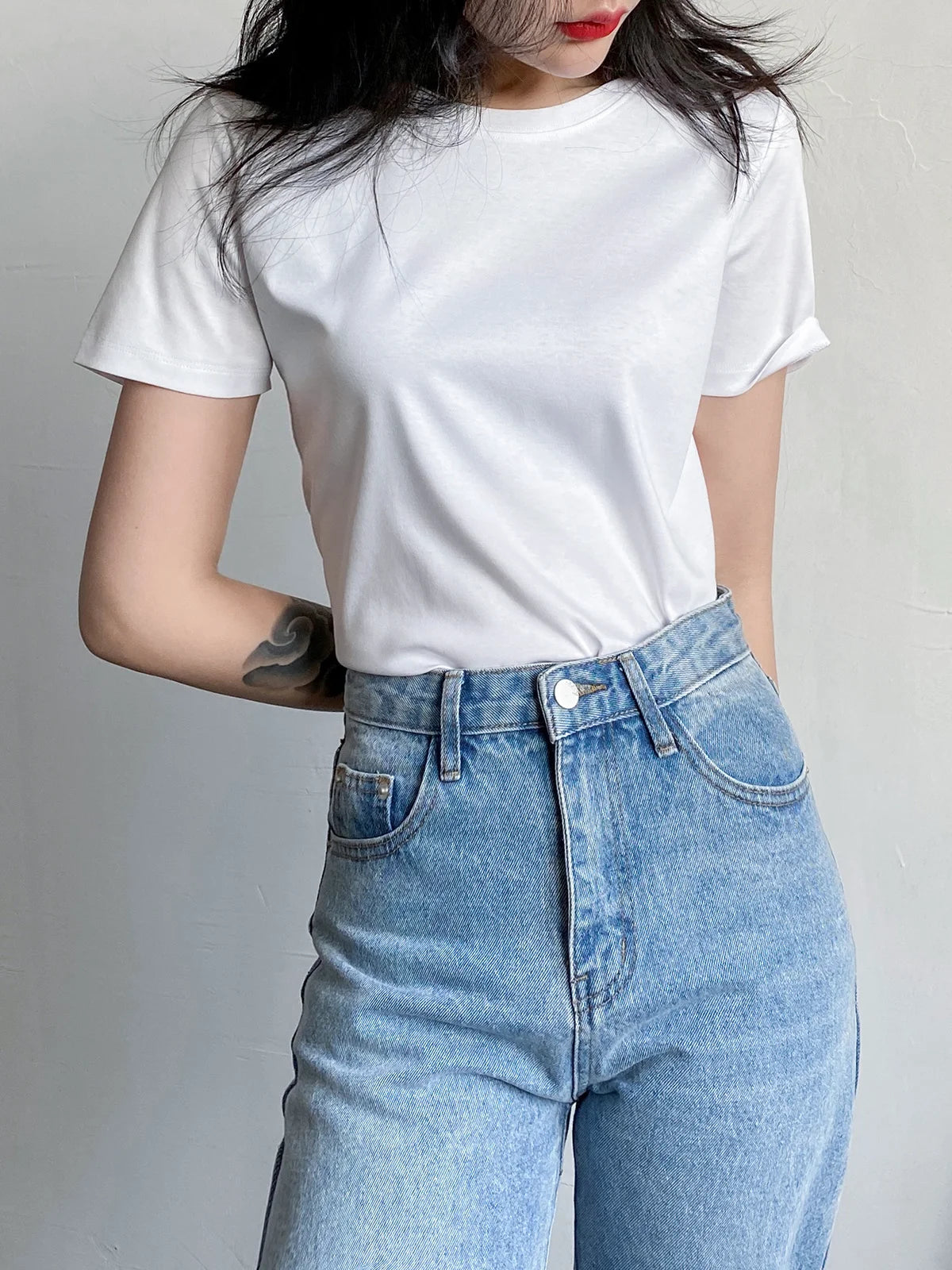 • Available in a range of classic solid colors, this T-shirt is versatile and easy to mix and match with your favorite pieces, making it an essential item in your wardrobe.