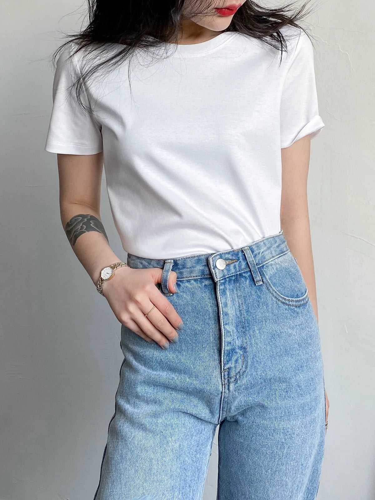 • The classic round neckline offers a clean and timeless look, perfect for layering or wearing on its own for a simple, elegant style.
