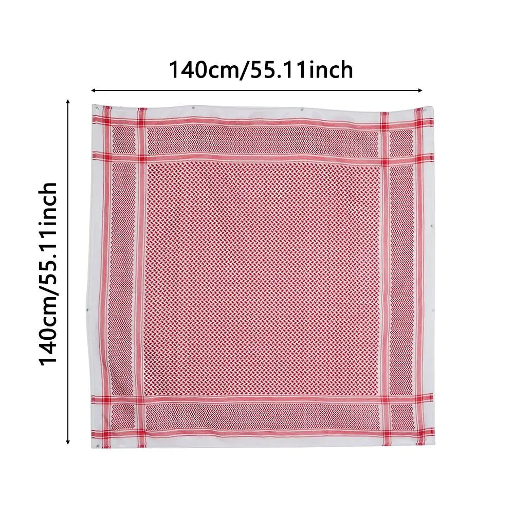 Measuring 140cm by 140cm (54 by 54 inches), our Kuffiyehs are versatile enough to be worn as a scarf, headwrap, shawl, or even as a statement piece in your home decor.