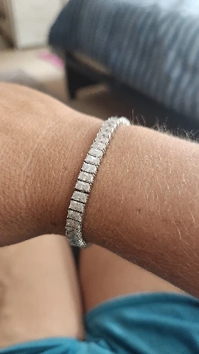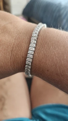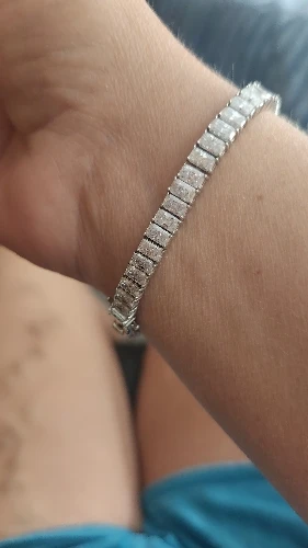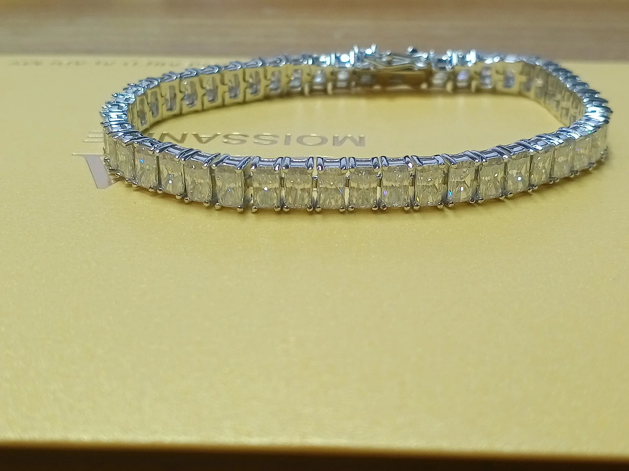 The lighting in the room is too dim to capture the bracelet's beauty in photos, but you can still see it sparkles! It's real moissanite i tested it with a diamond tester, and it comes with a gra certificate. This is a trustworthy store.