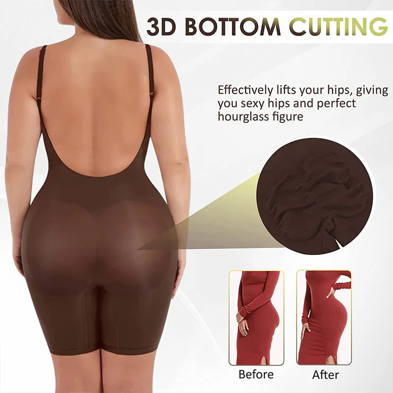Introducing our Seamless Backless U Neckline Full Coverage Shapewear, a game-changer in body sculpting. This shapewear offers a host of incredible features, including an open crotch for easy bathroom access, a cupless design, and thigh-slimming boyshort styling. It also boasts two adjustable shoulder straps for a customized fit and butt-lifting shaper panties for a perky silhouette. Say goodbye to muffin tops with the seamless design that smoothes out your contours flawlessly. This shapewear is your secret weapon for confidence and comfort, allowing you to look and feel your best all day long. Upgrade your shapewear collection with our Full Coverage Shapewear today.