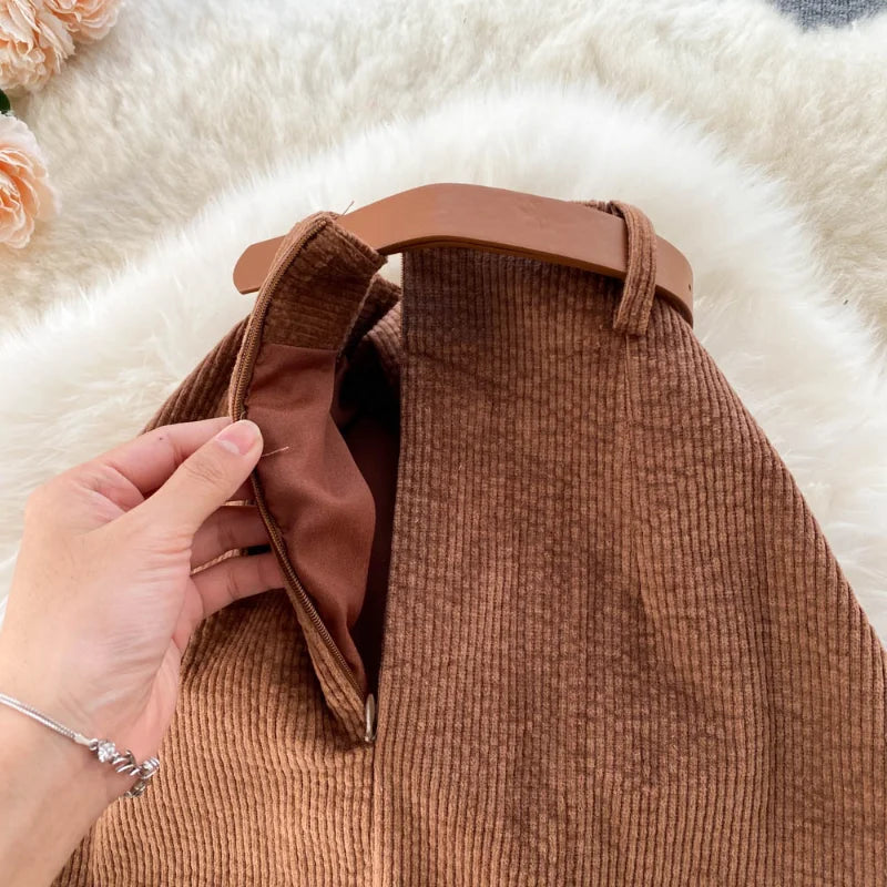 This pencil skirt features a high waist and side split design, adding a touch of elegance and modern flair to your outfit. Crafted from high-quality corduroy fabric, it's designed for both comfort and style, making it a versatile addition to your wardrobe.