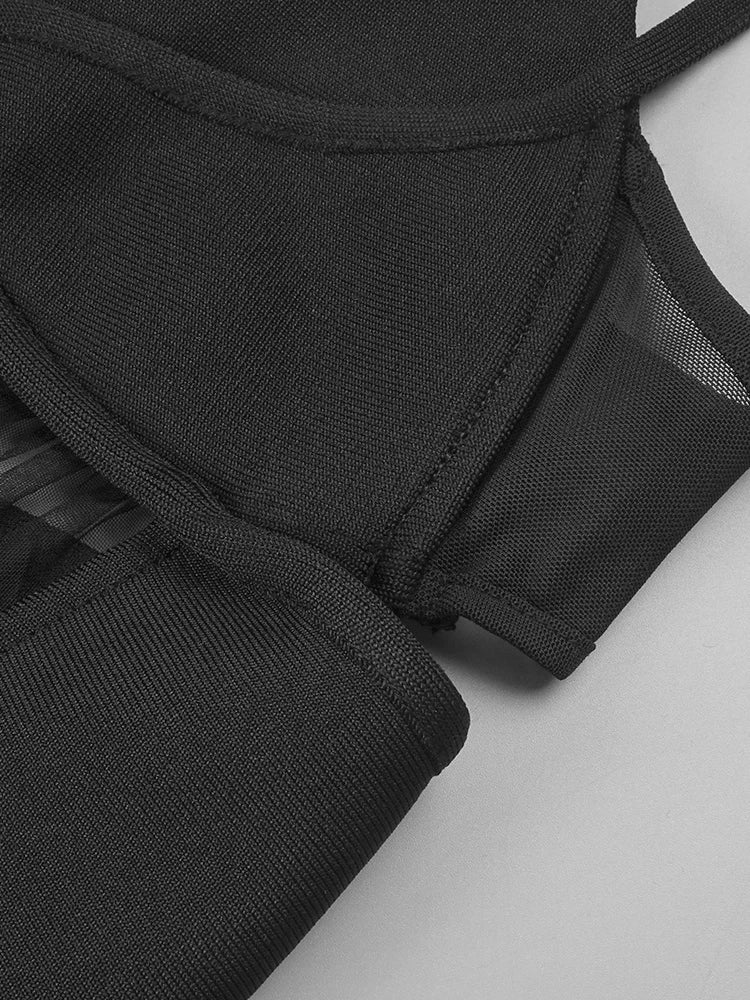 Spaghetti Strap Mesh Details Cut-Out Black Dress