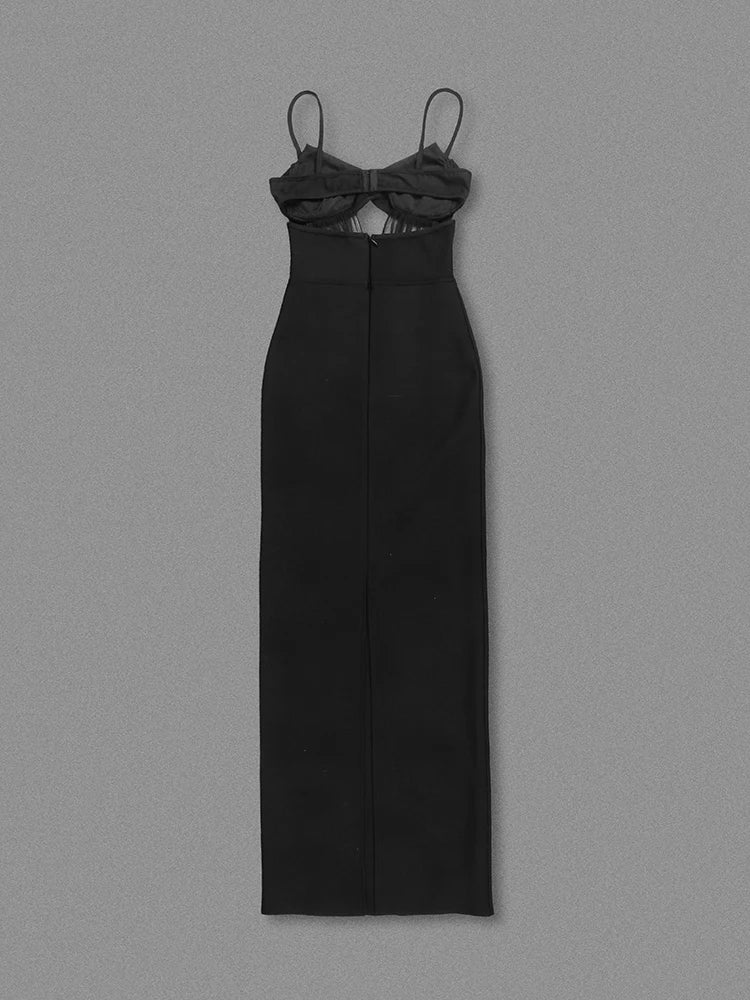 Bold, sultry, and undeniably sophisticated — this Spaghetti Strap Mesh Cut-Out Dress is made to make a statement. Featuring a sleek bodycon silhouette and an ankle-length finish, this dress hugs the body in all the right places with a medium-stretch fit that moves with you.