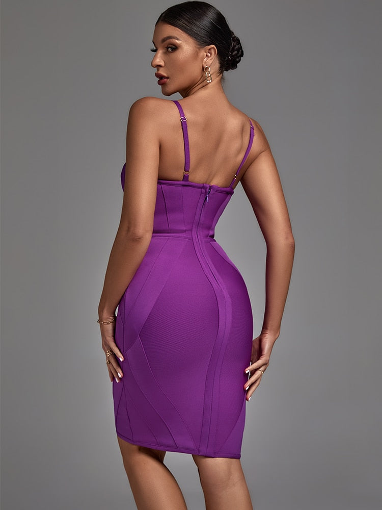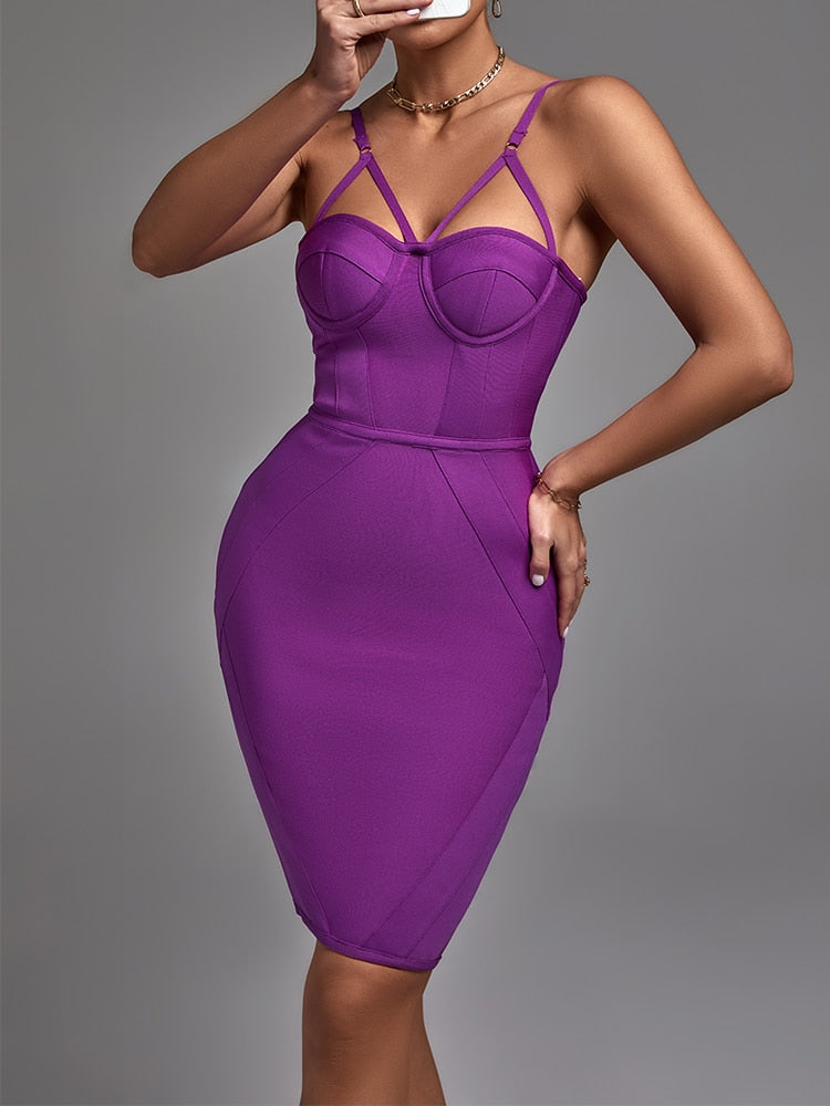 Spaghetti Straps Purple Bodycon Bandage Dress