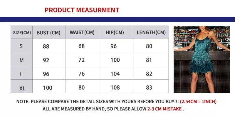 Spaghetti Straps Sequin Tassel and Feather Mini Dress