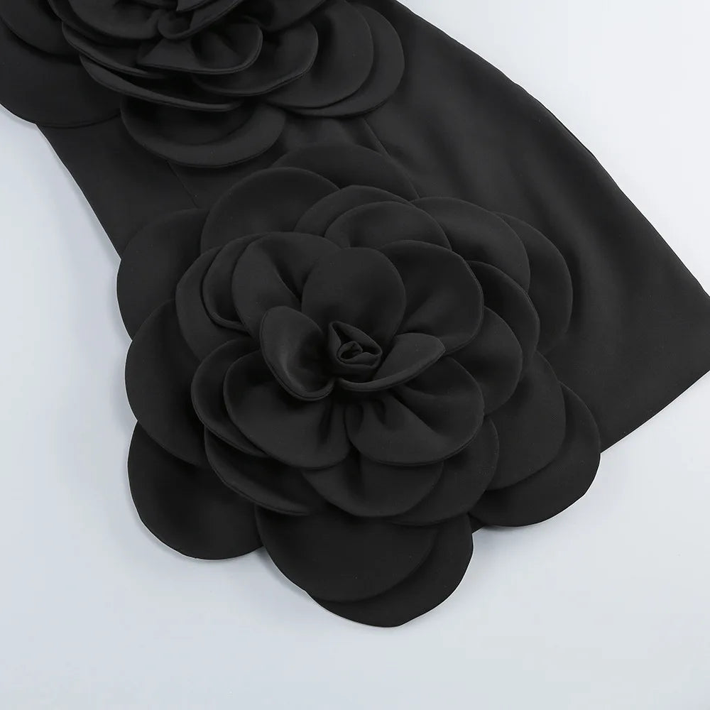 Step into a world of elegance and charm with our Strapless 3D Flowers Mini Dress. This stunning dress features two prominent 3D flowers that add a dramatic and sophisticated touch. Perfect for cocktail parties, special events, or an evening out, this dress will make you the center of attention.