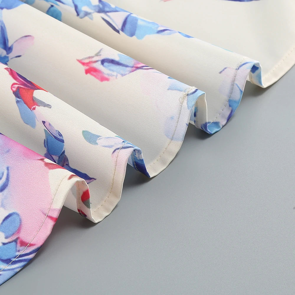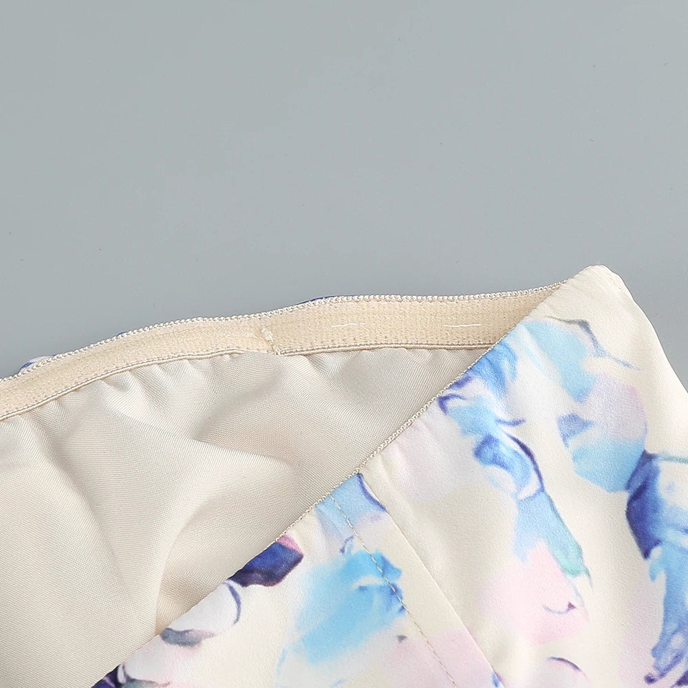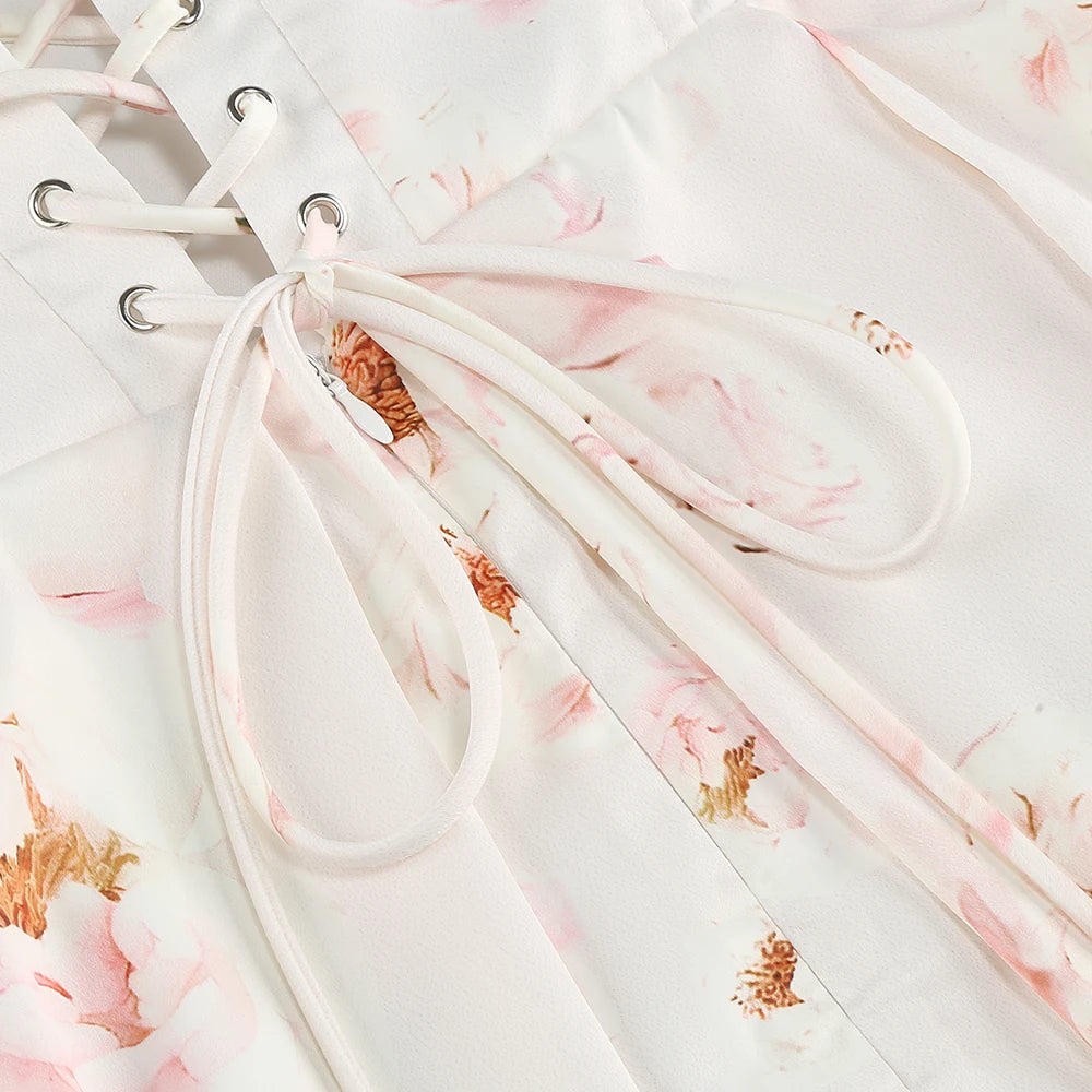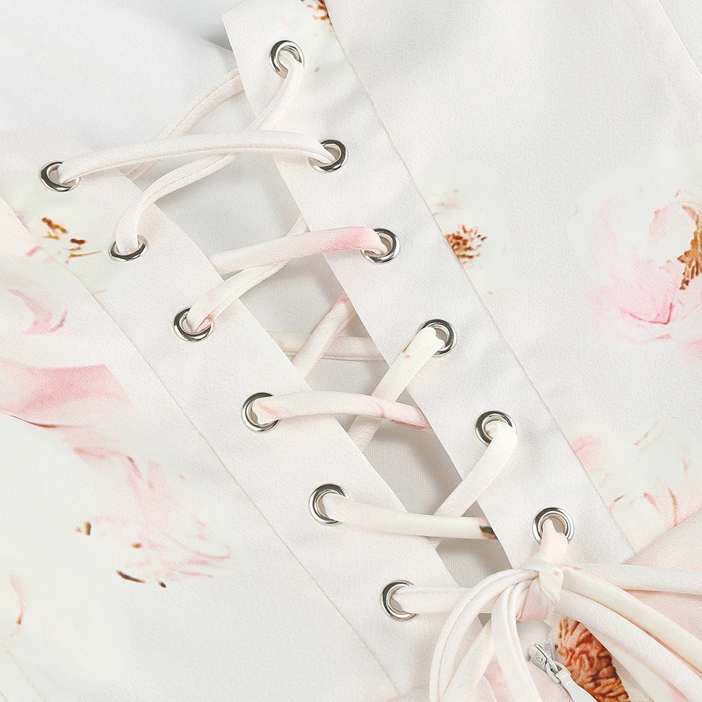The strapless neckline adds a soft romantic touch, while the floral print brings life and color to every step. A back zipper paired with an adjustable tie-back rope ensures a secure yet comfortable fit. Made with non-stretch fabric for structure, it’s perfect for garden parties, brunches, or sunny getaways.
