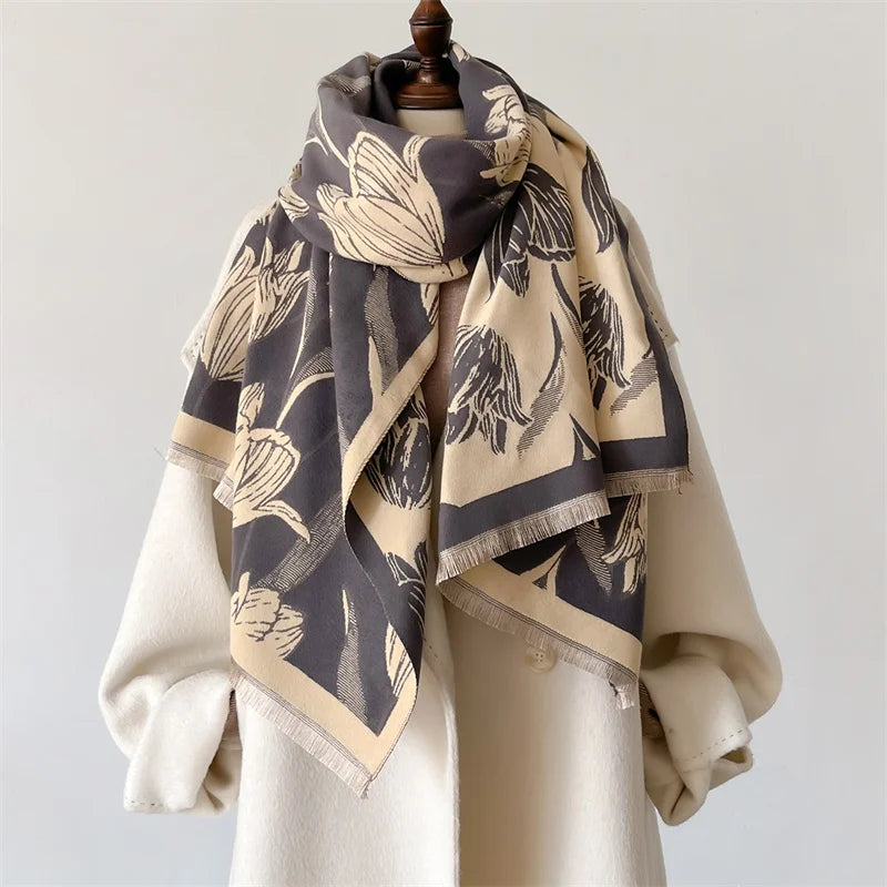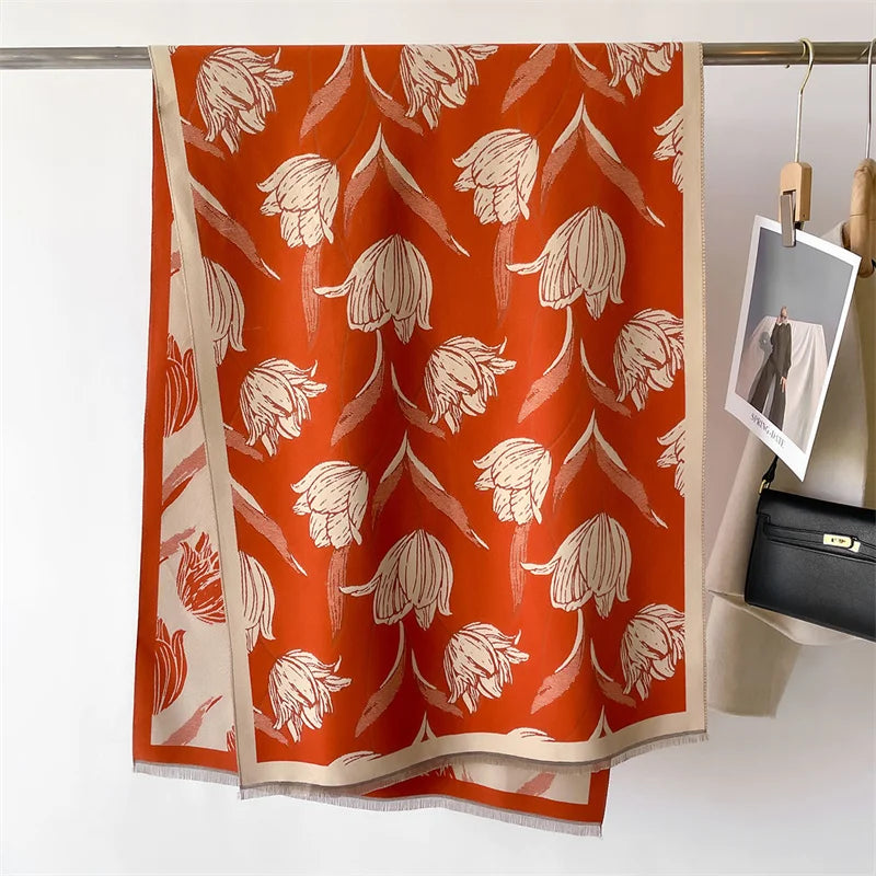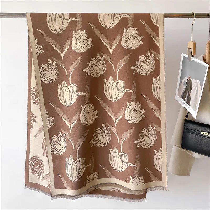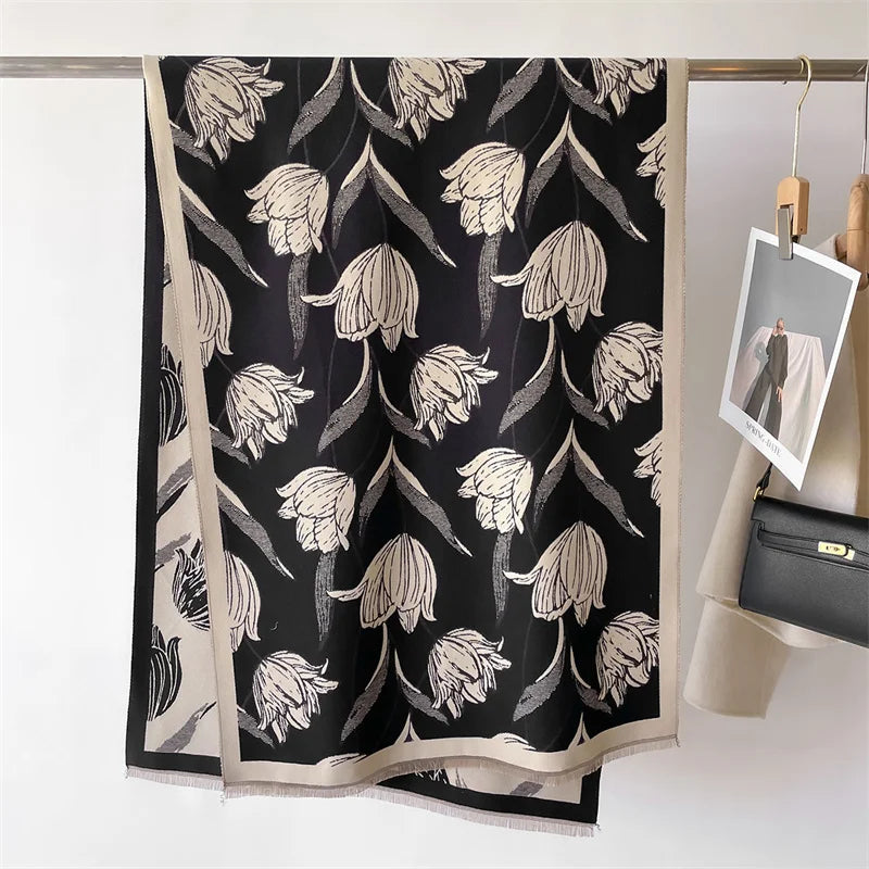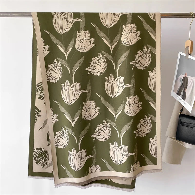 Elevate your style with our Tulip Flower Print Cashmere Scarf. Order today and bring the elegance of nature into your wardrobe!