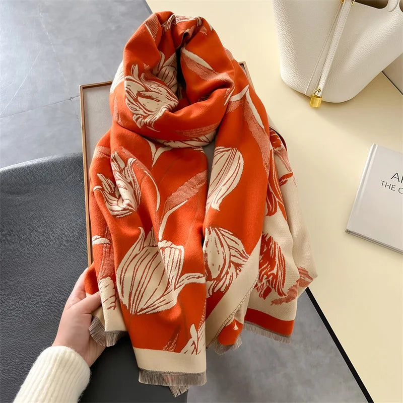 Tulip Flower Print Cashmere Scarf Double-Sided Pashmina
