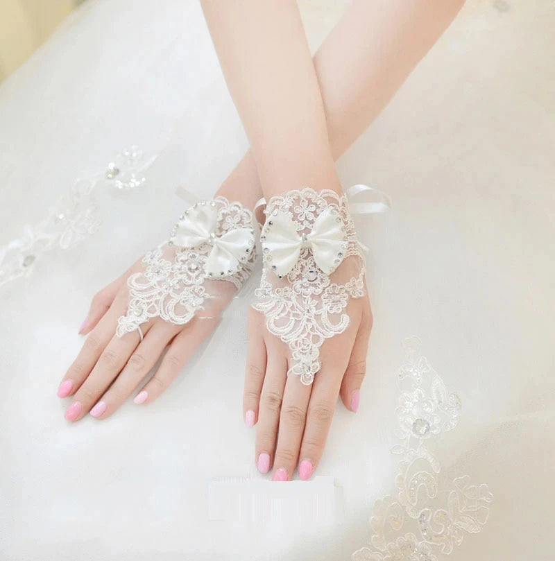 Whether you prefer the classic allure of lace or the sparkling glamour of beaded detailing, our White Bridal Short Gloves offer a range of styles to suit your unique bridal vision, adding the perfect finishing touch to your wedding day ensemble.