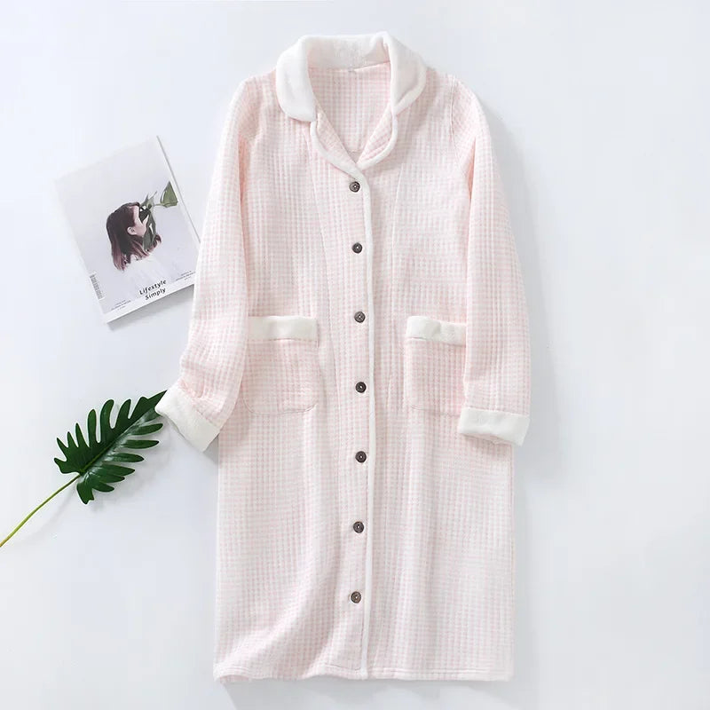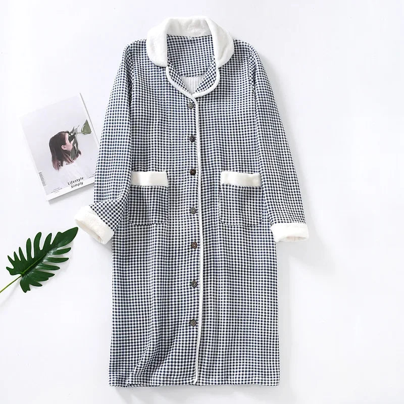 Stay snug this winter with the Winter Warm Cotton Robe Nightgown. Designed with pockets for convenience, this nightgown offers both warmth and style. The soft cotton fabric wraps you in comfort, making it the perfect companion for chilly nights. Whether you’re unwinding after a long day or starting your morning routine, this robe nightgown ensures you stay cozy and relaxed.