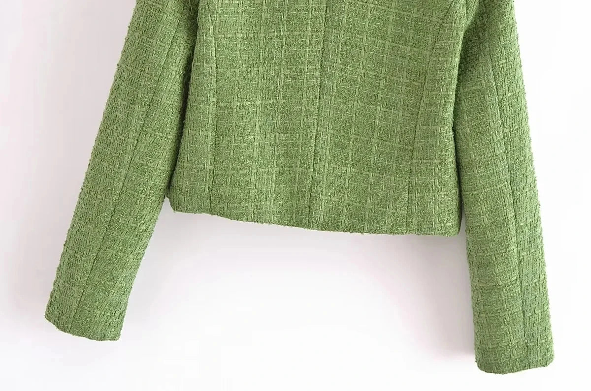 Add a touch of elegance and warmth to your winter wardrobe with this tweed mini suit. Shop now and stay on trend this season!