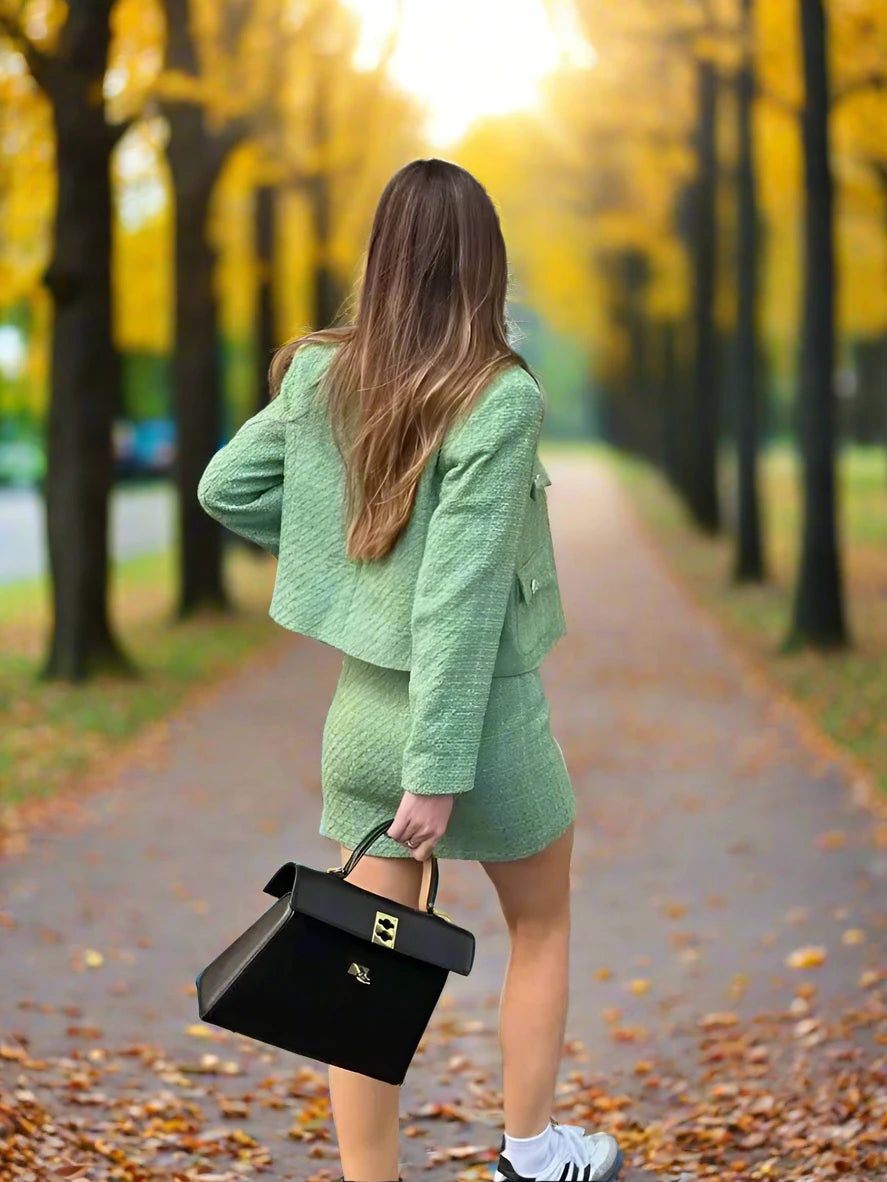 Women’s Winter-Autumn Tweed Mini Suit – Single-Breasted Jacket & Skirt