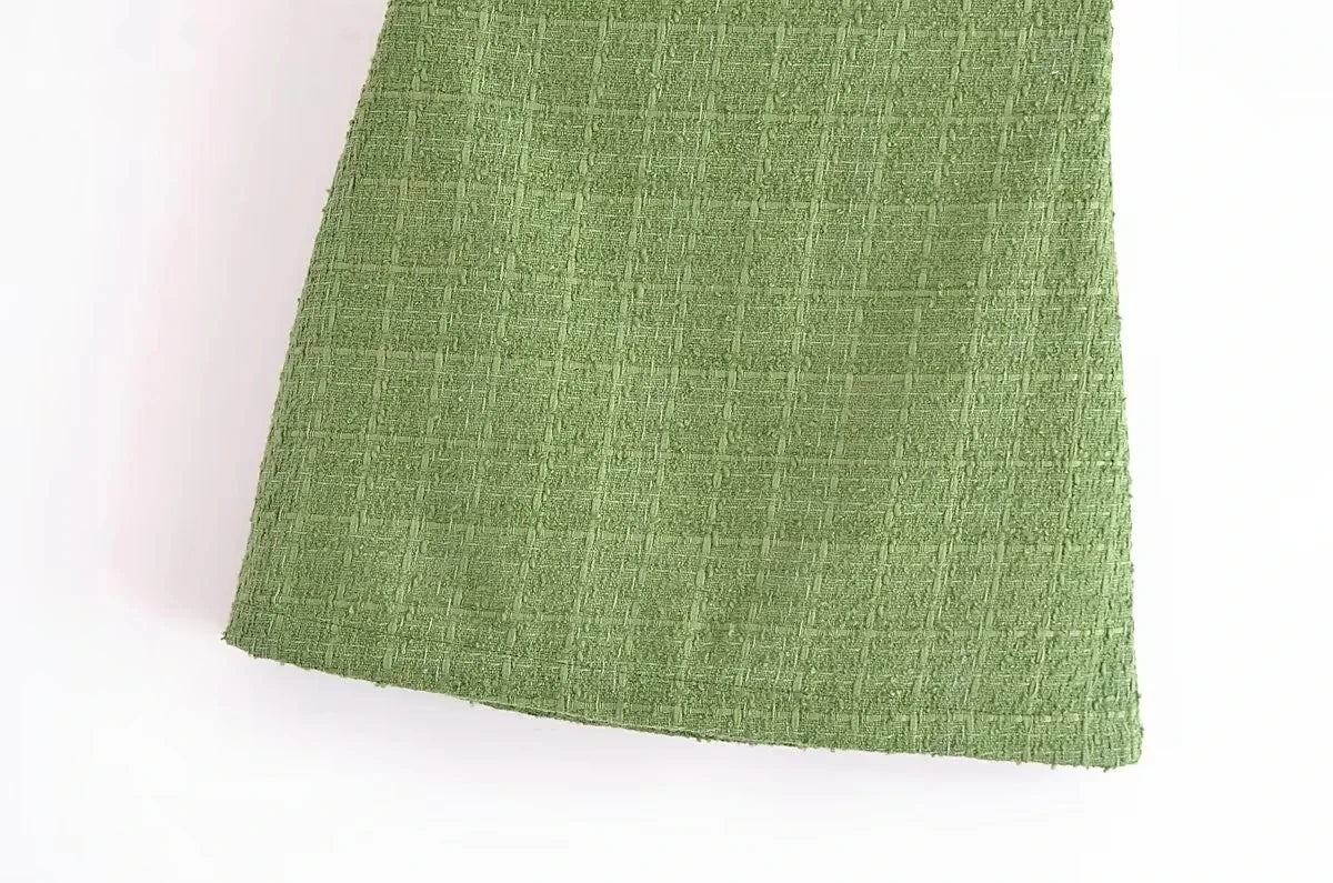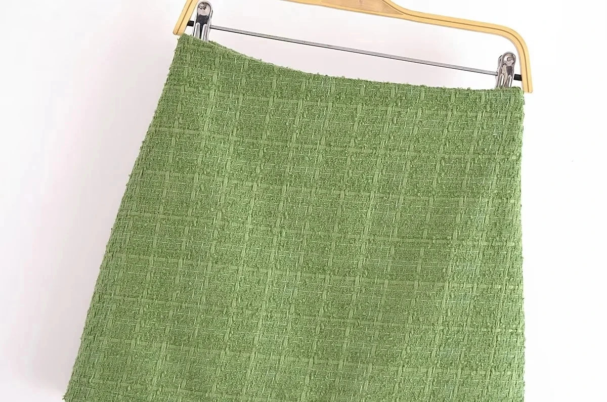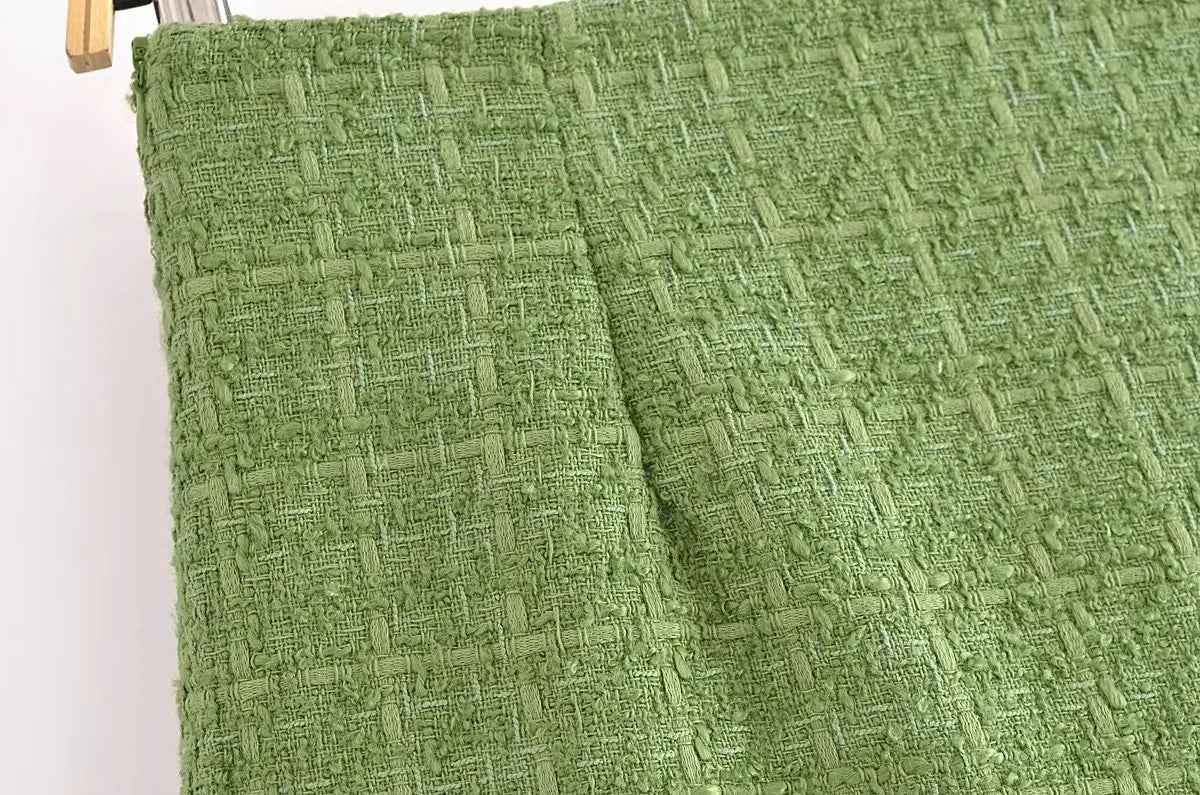 Styling Tips: Pair this tweed suit with knee-high boots or sleek ankle boots for a chic, on-trend look. Layer with a turtleneck or a fitted blouse for extra warmth, and accessorize with a statement bag to complete your outfit.