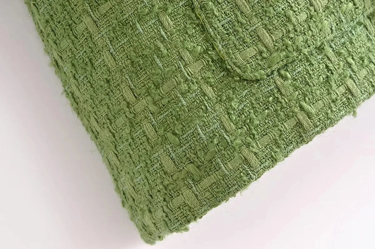 - Material: Cozy and textured tweed fabric, perfect for staying stylish and warm during autumn and winter.