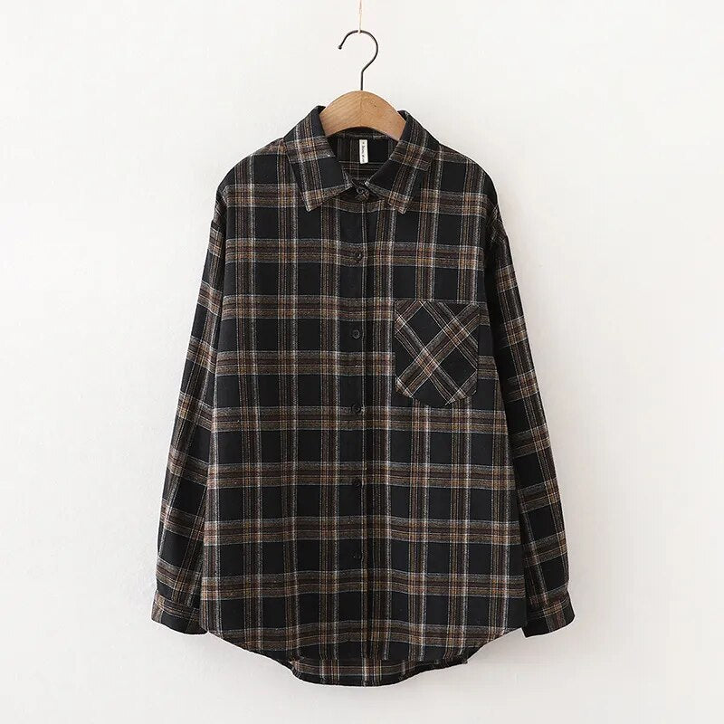 Women's Autumn Vintage Plaid Oversize Cotton Shirt