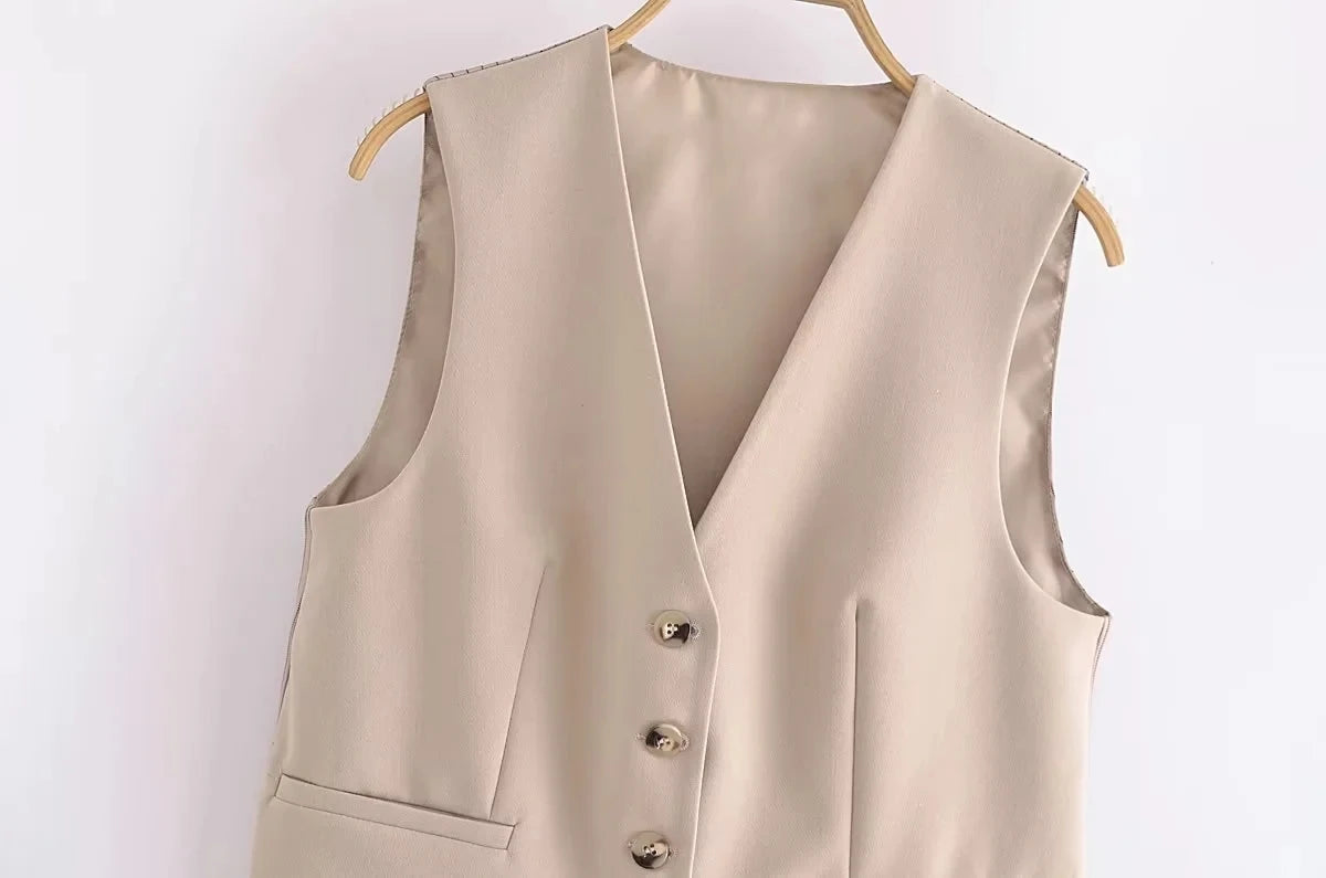 Upgrade your wardrobe with the Women’s Khaki Vest and Pants Suit, a versatile and stylish choice for any occasion.