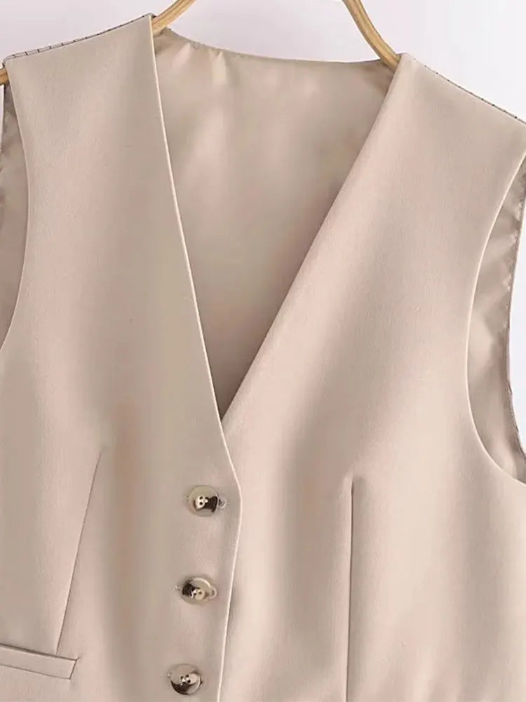 Women's Khaki Vest and Pants Suit