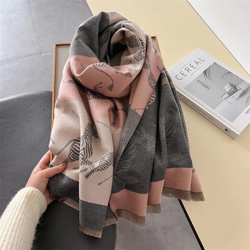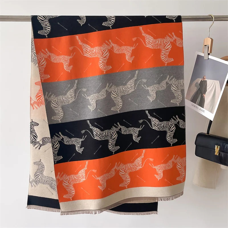 Stand out in style with our Zebra Print Cashmere Double-Sided Scarf. Order today and add a touch of wild sophistication to your wardrobe!